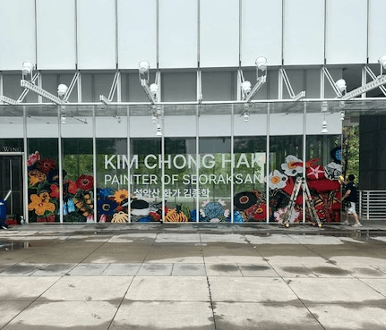 Create outdoor graphics, informational text, and intro graphics that communicate the story of Kim Chong Hak in both English and Korean.